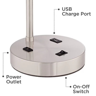 Bring sleek, modern style to your workspace, nightstand, or living area with this set of two contemporary USB desk lamps with smart sockets for easy app or voice control (compatible with Amazon Alexa and Google Home). They feature crisp, clean design, with a round base designed for modern efficiency and convenience with the inclusion of a 2-amp USB port and a power outlet. Each lamp features a versatile brushed nickel finish that pairs perfectly with a crisp white linen drum shade for excellent illumination.