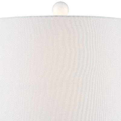 Embellish charming vintage inspired decor with the smooth gourd silhouettes of a set of two Mid-Century Modern table lamps. The lamps include smart sockets the enable voice and app control, and are designed by the 360 Lighting brand. Chic white finish highlights smooth ceramic construction and each lamp is topped with a tapered drum shade in crisp white for true illumination in your living room or home office.