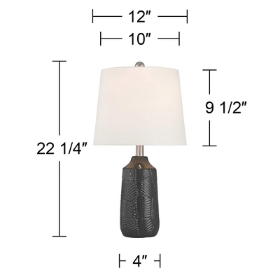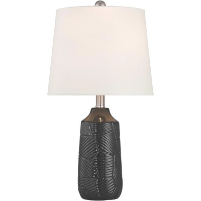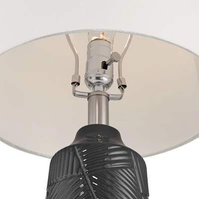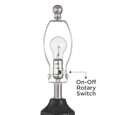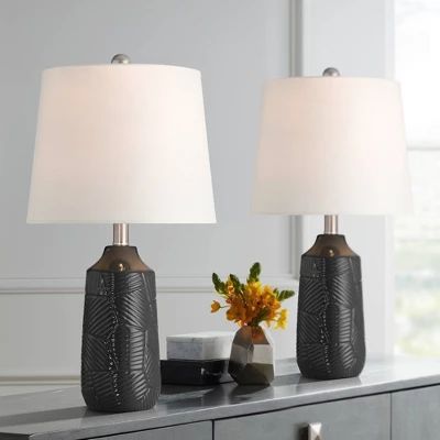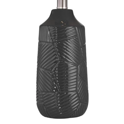 - Black finish bases with a textured decorative pattern. Ceramic lamp construction.