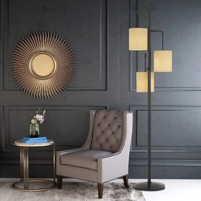 Cal Lighting makes this Contemporary styled metal lantern floor lamp stands 72″ tall and features fabric shades. Three 60 Watt bulbs are needed for this floor lamp (bulbs are not included). Use this lamp for accent and functional lighting. One or two of these floor lamps will be a great addition to your living room or family room.