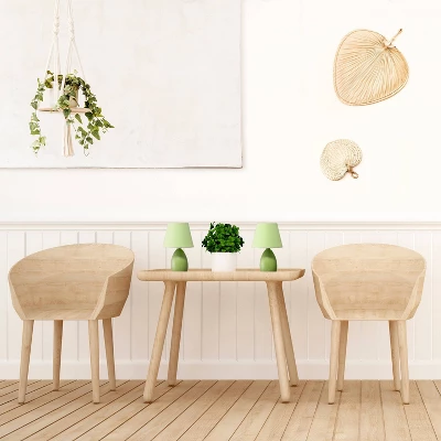 9.45″ 2pk Petite Ceramic Oblong Bedside Table Desk Lamps With Matching Tapered Drum Shade Green – Creekwood Home