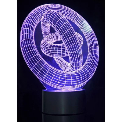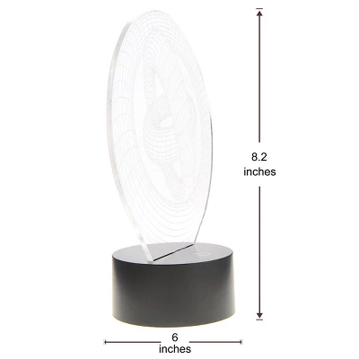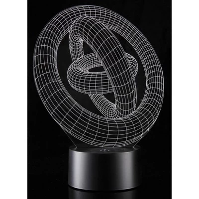 Description:This Almost-Magical 3D Illusion Lamp Turns Heads and Gets You Compliments GALORE! Transform your office, bedroom or local gathering place with this ultramodern and stunning 3D light sculpture. Because the 3D Illusion Light is powered by 9 long life, super bright LED lights, which never get hot and use very little energy, this is the perfect night light for childrenFeatures:Eco-friendly, USB Powered for Low Energy ConsumptionComprised of 4 millimeter acrylic glass which is both durable and beautifulChange up the mood by selecting one of 7 different color modes just by pushing the control button on the basePackage Contents:Laser sketched 3D acrylic plateMicro USB power cableEnergy-efficient LED light base
