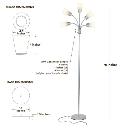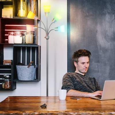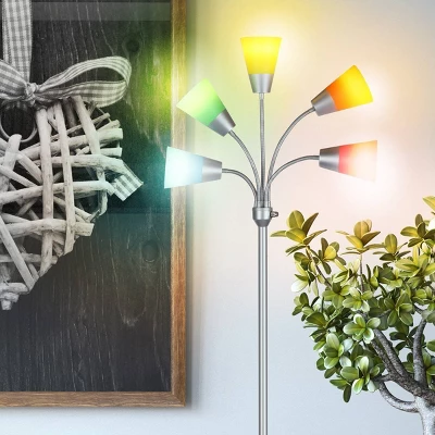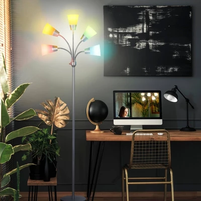 Transform your living space with the Brightech Medusa Modern LED Floor Lamp! This tall, dimmable lamp stands 78 inches tall and is available in Black, Brass, and Silver. With five adjustable gooseneck arms and five interchangeable shades, this lamp is perfect for minimalist, urban, contemporary, and modern decors. The weighted base, multi-color shades, and cool-to-the-touch bulbs make it great for any kid’s bedroom. With three brightness settings, you can choose between turning 2, 3 or all five heads on at once, making the Medusa perfect for any occasion or activity. Energy-saving and long-lasting, the Medusa Modern comes with built-in LED bulbs offering 3,000K of warm white light. At 8 Watts each, these LED bulbs are guaranteed to last 20,000 hours of usage, or 20 years at 3 hours of use a day. Plus, with Brightech’s 3-Year Product Warranty, you can have peace of mind that your purchase will last. Transform your living space with the Brightech Medusa Modern LED Floor Lamp!