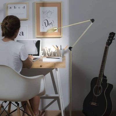Transform your home or office with the Brightech Sage 2-in-1 LED Craft Table and Floor Lamp. This dual-purpose lamp is perfect for crafting, reading, and relaxing, and can be used as both a standing floor lamp or a desk lamp. With three hinges and an adjustable pole, this versatile lamp can accommodate any situation or need, standing up to 68 inches tall. The Sage features multiple brightness settings and a focused beam, as well as dimmable LED bulbs with three color temperatures (3,000K warm white, 4,000K soft white, or 5,000K daylight white) and guaranteed to last 20,000 hours, or 20 years at normal usage. This energy-saving multi-purpose lamp is available in an upscale gold and pairs nicely with a variety of decors, including modern, mid-century modern, contemporary, industrial, and art deco. Plus, Brightech stands behind our LED light for living rooms and offers a three-year warranty, so you can be sure your lamp will last. Get the perfect lighting for any situation with the Brightech Sage.