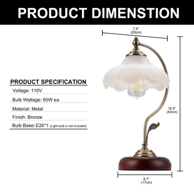 Add timeless charm to your home with this 1-Light Vintage Table Lamp featuring a petal-shaped glass shade. Designed with a warm, classic silhouette and standard E26 socket, this lamp brings soft character to any tabletop, whether in the bedroom, living room, or office. The compact size fits easily into cozy spaces, while the floral glass shade adds a romantic touch. Bulb not included.