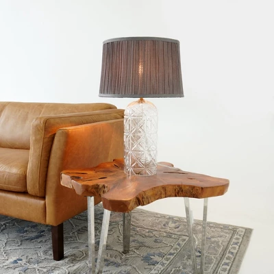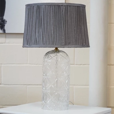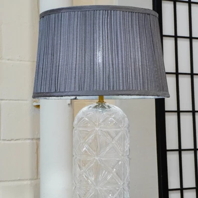 - Exquisite Design: The textured clear glass body and pleated grey fabric shade add a touch of luxury and elegance to your room