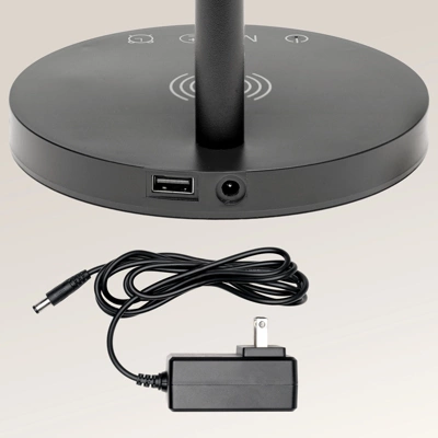 Elevate your workspace with this sleek desk lamp featuring 5 touch-selectable color modes, adjustable brightness, and a classic fabric shade. Designed for both style and functionality, it includes a built-in wireless charger, USB port, and energy-saving shut-off timer-perfect for work, reading, or creative projects