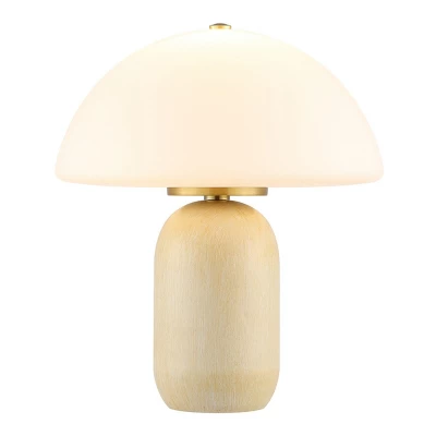 Illuminate your space with the elegant Fabio table lamp. Standing at 13.5 inches, this lamp combines the beauty of natural and brass tones, bringing a touch of sophistication to any room. Crafted from a blend of glass and iron, Fabio showcases a harmonious balance of simplicity and style. The natural color paired with brass accents fits seamlessly into a variety of interior designs, adding warmth and charm to your home. Whether placed in your living room, bedroom, or office, this versatile lamp becomes a stylish focal point. Experience the ambience and make a statement with the Fabio table lamp today.