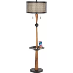 Shore up a transitional or farmhouse setting with this pair of modern industrial table lamps. Each lamp comes in a tapering geometric open column silhouette, which gives a full view of the nightlight feature within, and is topped by a black faux silk shade. A four-way switch allows for greater lighting control over the nightlight feature and the main light, and energy-efficient LED bulbs in a vintage Edison style are included for use with the nightlight. Each lamp also has a USB port built into the design, allowing for the charging of smartphones and other devices.