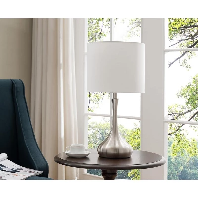 Brighten your space with timeless elegance using this set of two table lamps from Kings Brand Furniture. Featuring sleek brushed nickel metal bases paired with classic white fabric shades, these lamps offer a clean, contemporary look that complements a wide range of interiors. Ideal for nightstands, end tables, or living room accents, each lamp uses a standard type “A” bulb up to 100 watts and includes a gear switch for easy operation. Add both style and function to your home with this versatile lighting set.