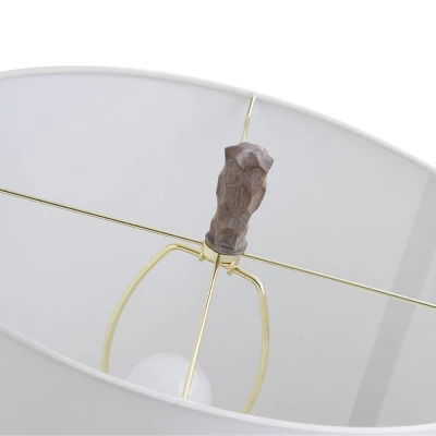 Superb craftsmanship and coloring give this transitional table lamp an appealing mix of modern and rustic styles. The polyresin frame has a gourd shape, bulging in the center of each segmented section. A wooden brown finish provides a little naturalism, while a golden accent line matches the elegant coloring of the neck. A white linen shade emphasizes the fixture’s classy design while drawing a subtle contrast to the dark brown tone. Due to lighting and monitor differences, actual colors and finishes may vary slightly from what appears online