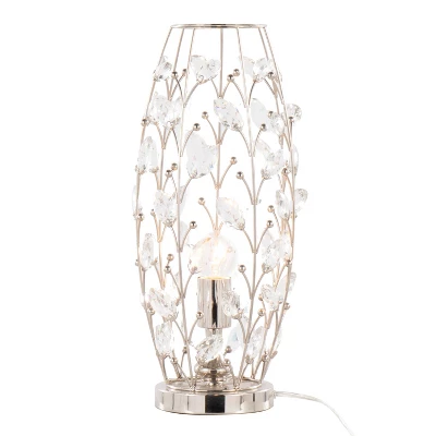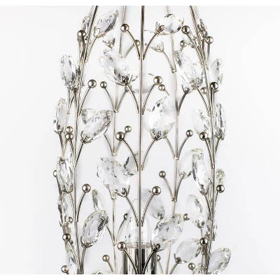 Add glamour and sparkle to your life with the Crystal Bud Accent Lamp from Grandview Gallery by LumiSource. A chic addition to modern aesthetics, it showcases a nickel finish so polished you can catch your reflection in it. It is crowned by a crystalline shade that gives the impression of flower buds. When lit, the faceted genuine crystal beads that are individually threaded into the metal shade cast a radiant display of distinctive cascading patterns.