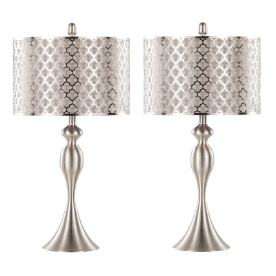 This sleek set of Ashland Table Lamps from Grandview Gallery by LumiSource cuts an eye-catching figure. With their curvaceous hourglass silhouettes, these lamps add sensuous class to any room. Each lamp is crowned by elegant double-layered shades and comes in a variety of colors, so you can pick a combination that suits your space the best.