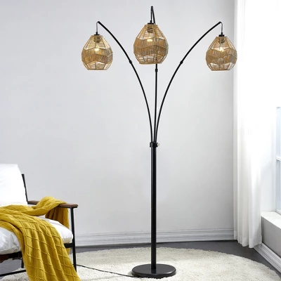Enhance your bedroom with the Maxax 76.5″ Rattan Floor Lamp. Featuring three lights with rattan shades and an arched design, this farmhouse boho-style lamp provides soft, ambient illumination. The sturdy base ensures stability, while its natural materials complement modern, rustic, or bohemian interiors. Ideal for reading corners or general lighting, it blends functionality with minimalist design.