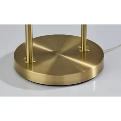 Adesso Amira Shelf Floor Lamp Antique Brass: 64″ Tall, White Drum Shade, Storage Shelves, ETL Listed