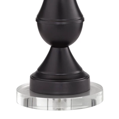 Add some style and lighting to any corner of your home with this pair of modern looking table lamps. The stunning bronze finish looks great with the oatmeal shades. Each table lamp has a USB port that lets you charge your devices easily. Each lamp has a 7″ round riser.