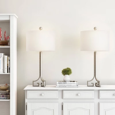 Set Of 2 Greek Key Lamps Antique (Includes LED Light Bulb) Silver – Trademark Global
