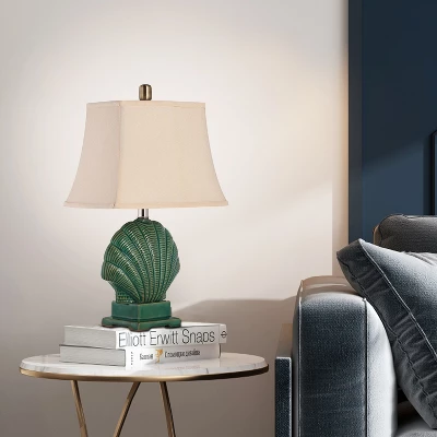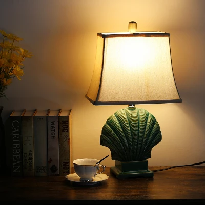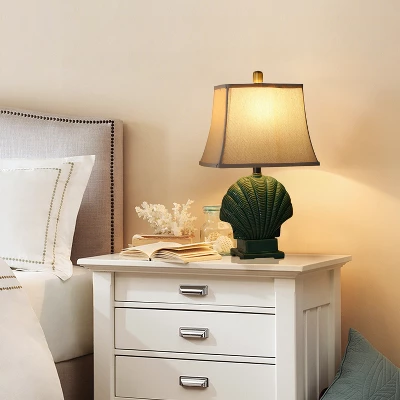 - FASHIONABLE TABLE LAMP: The neutral toned hard fabric lampshade enhances the effect of the bedroom, living room, or entrance area, making it perfect for pairing with a clean and modern style. The base of the desk lamp is a green shell shape, showcasing your effortless fashion sense.