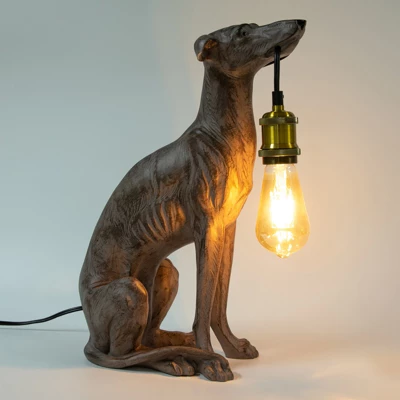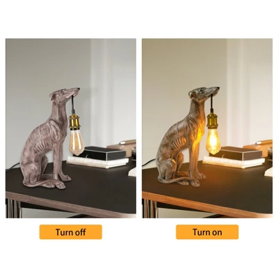 Add a touch of artistic charm and loyal companionship to your space with this unique dog-shaped table lamp. Meticulously crafted from natural resin and iron through a detailed sculpting process, this piece serves as both a functional light and a striking decor item. Its chic design symbolizes loyalty, creating a warm, guarded atmosphere in any room. Arriving fully assembled with a convenient push-button switch, it’s ready to illuminate your living room, bedroom, or office with a beautiful glow (bulb not included).